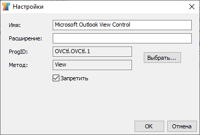 Поля ProgID, Метод и Имя компоненты заполнятся автоматически при выборе компоненты. ProgID содержит сокращенное название компоненты и номер ее последней версии.